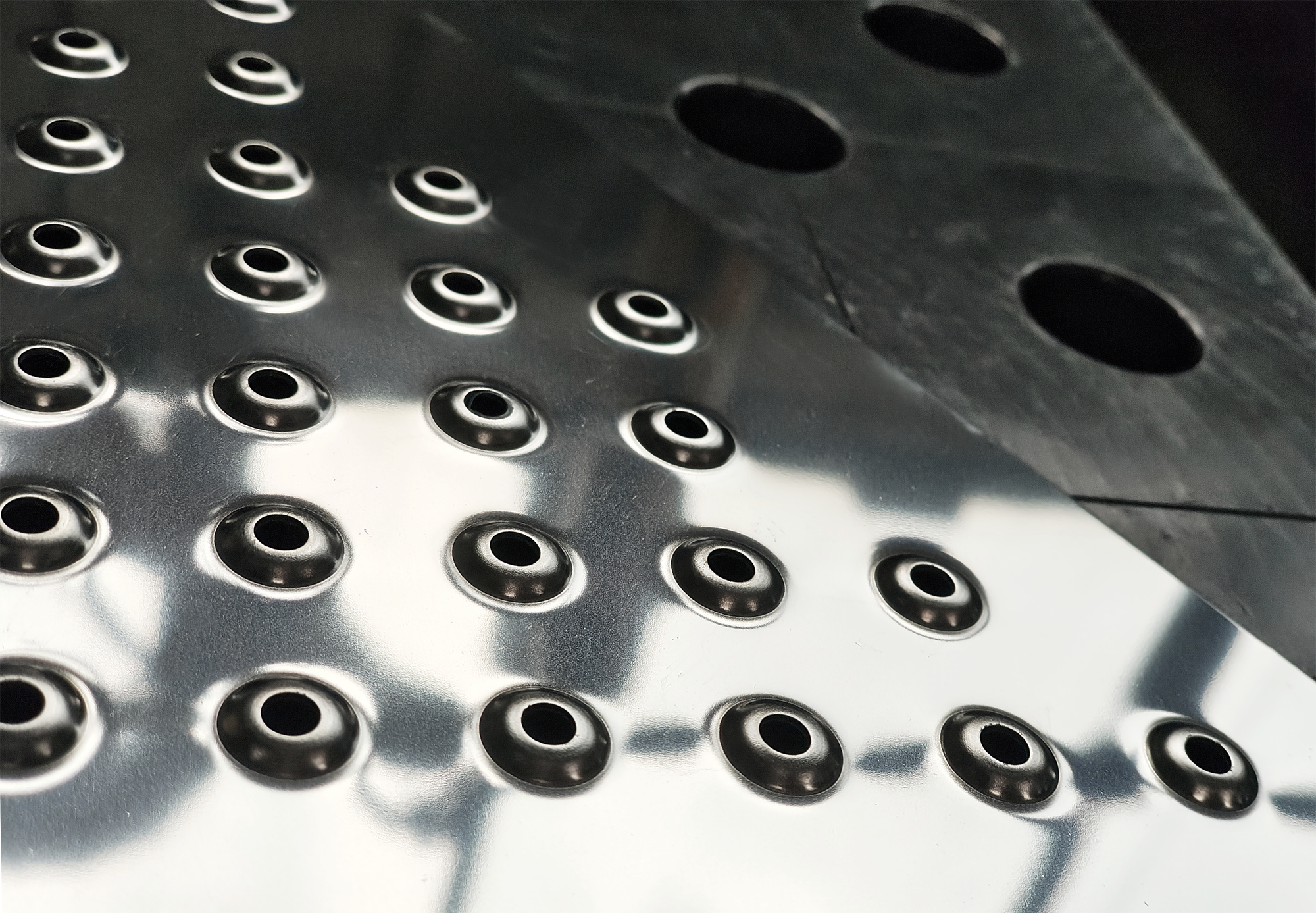 La punzonatura permette di tagliare (o forare) un particolare disegno. La peculiarità di questa tipologia di lavorazione è quello di permettere sia il taglio del materiale sia la sola deformazione, regolando la sua forza in base allo spessore, alla resistenza meccanica o alle dimensioni desiderate. Un altro interessante vantaggio è la possibilità di asportare le “bave” di taglio direttamente in macchina. CS Bertollo può eseguire può comunque eseguire la medesima operazione con un’apposita macchina levigatrice / satinatrice.